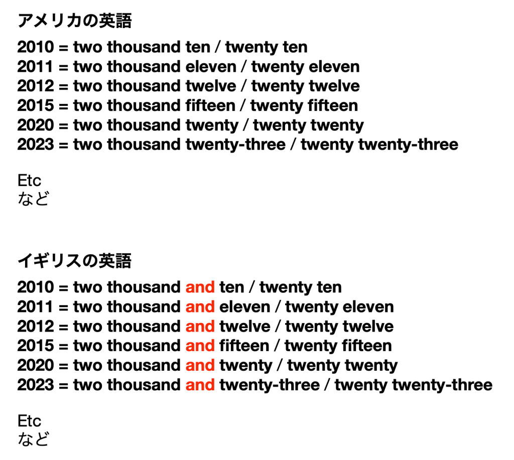 (アメリカ人は“two thousand one”と言うけど、イギリス人は“two thousand and one”と言います。)