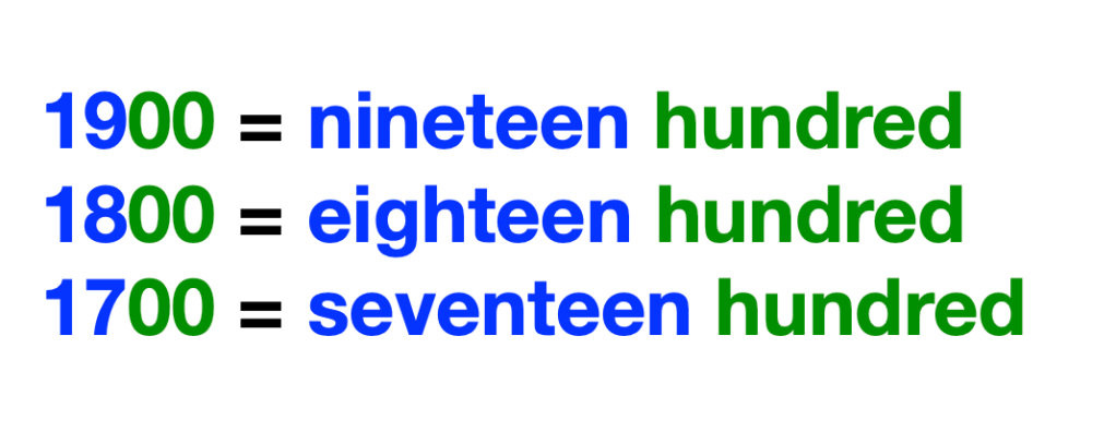 年の末尾が “00 “の場合は、”hundred “と表記します。