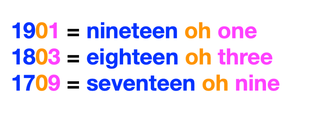 If the year ends in “0” and another digit, the “0” is said “oh”: