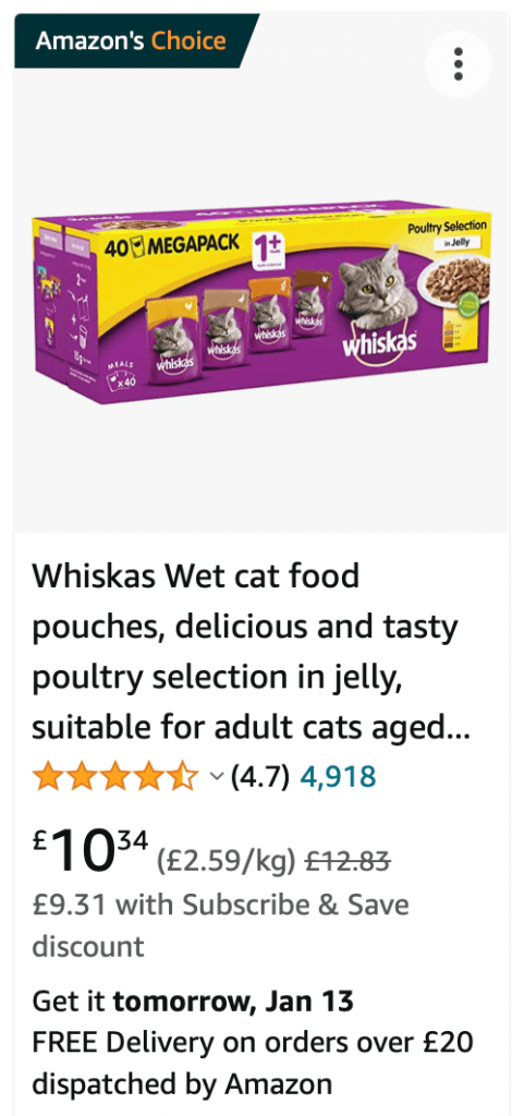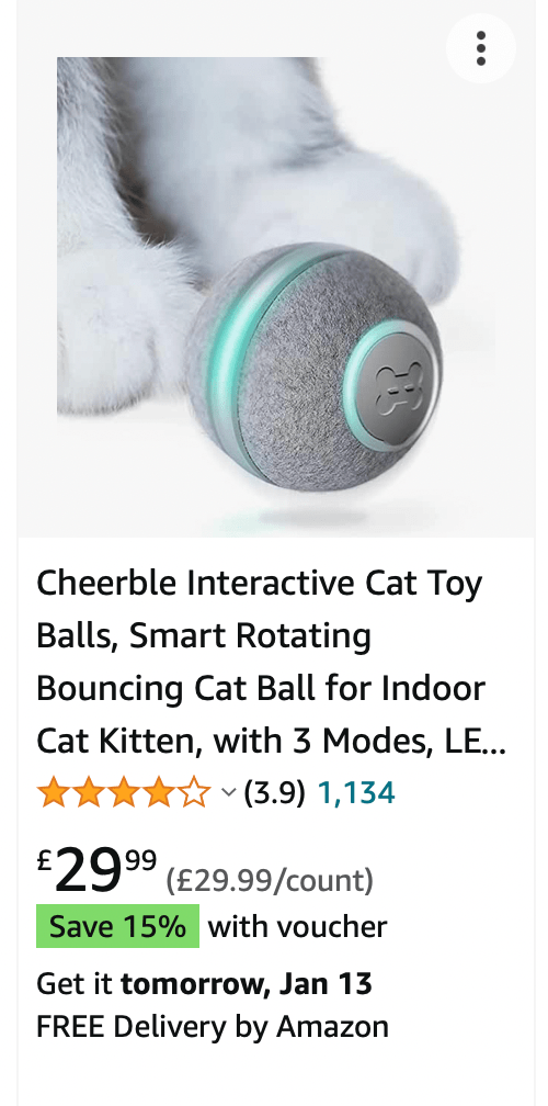 猫におもちゃを買いたいので、アマゾンで検索します。