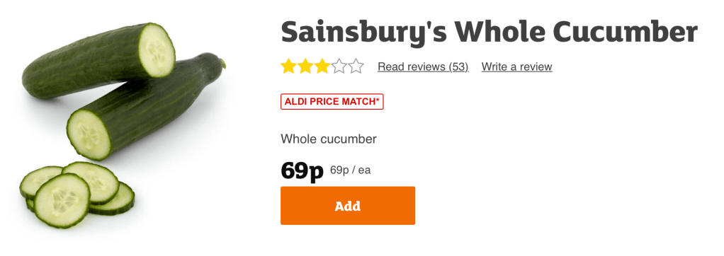 This cucumber is from the famous UK supermarket Sainsbury’s.